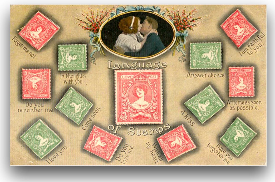 Of note, the 1¢ green Benjamin Franklin stamp is positioned on the postcard in a manner that has a special meaning. In this case, it means “With all my heart” or “Have you forgotten me” — either of which is a tender sentiment from a brother to his sister.